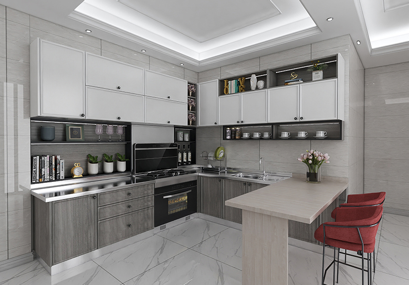 芬兰牧歌---崇尚简单自由的生活方式,将芬兰人度假般的美食体验融入设计风格,微型休闲桌,搭配大理石纹的不锈钢台面白色吊柜犹如朵朵白云般悠然,下厨在这里,是一场芬兰式的森林湖泊之旅。崇尚自然,生性宁静,无拘无束。