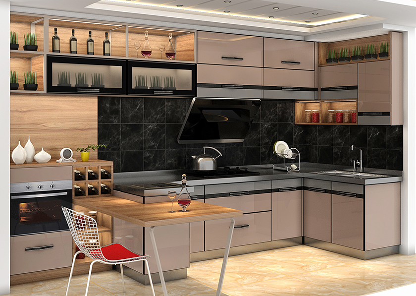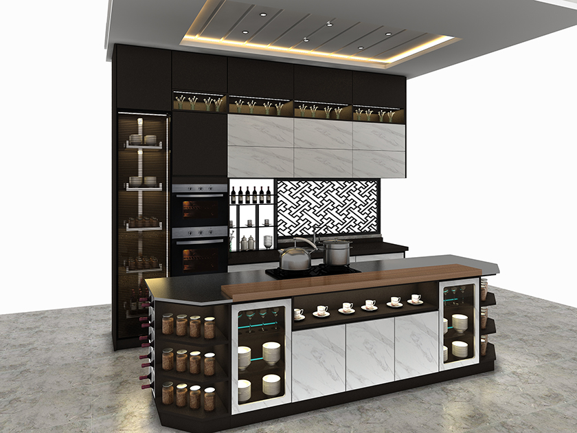 富兰卡橱柜秋意印象是一款将烹饪于休闲娱乐融合一体的产品,延展性极强的开放格设计,台上柜于吧台的巧妙设计,让我们的居家环境更加融合统一。